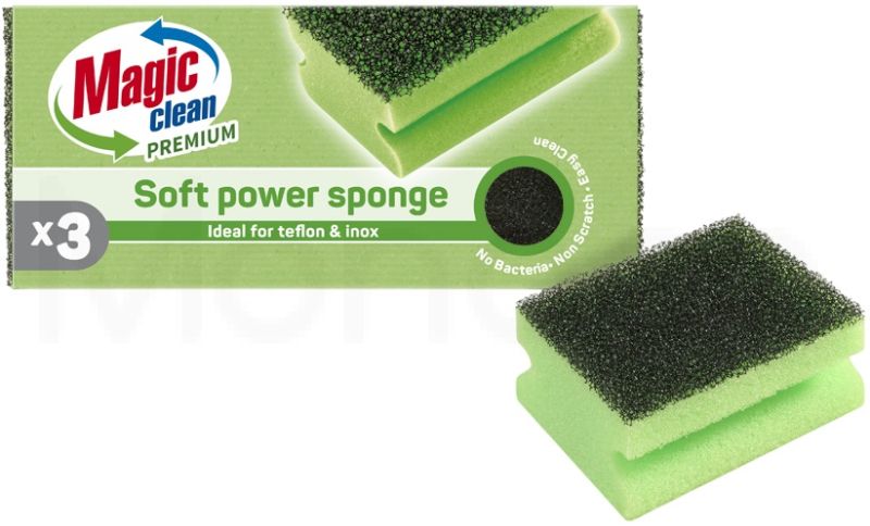 Домакинска гъба с канал 3 бр. за универсална употреба в домакинството. Каналът на гъбата служи за предпазване на пръстите от контакт със замърсените повърхности. Абразивът е подходящ за почистване на чувствителни на надраскване съдове и повърхности. Абразивът има отворена структура, която позволява почистването му от хранителни отпадъци под течаща вода, в резултат на което в домакинската гъба не се развиват неприятни миризми.