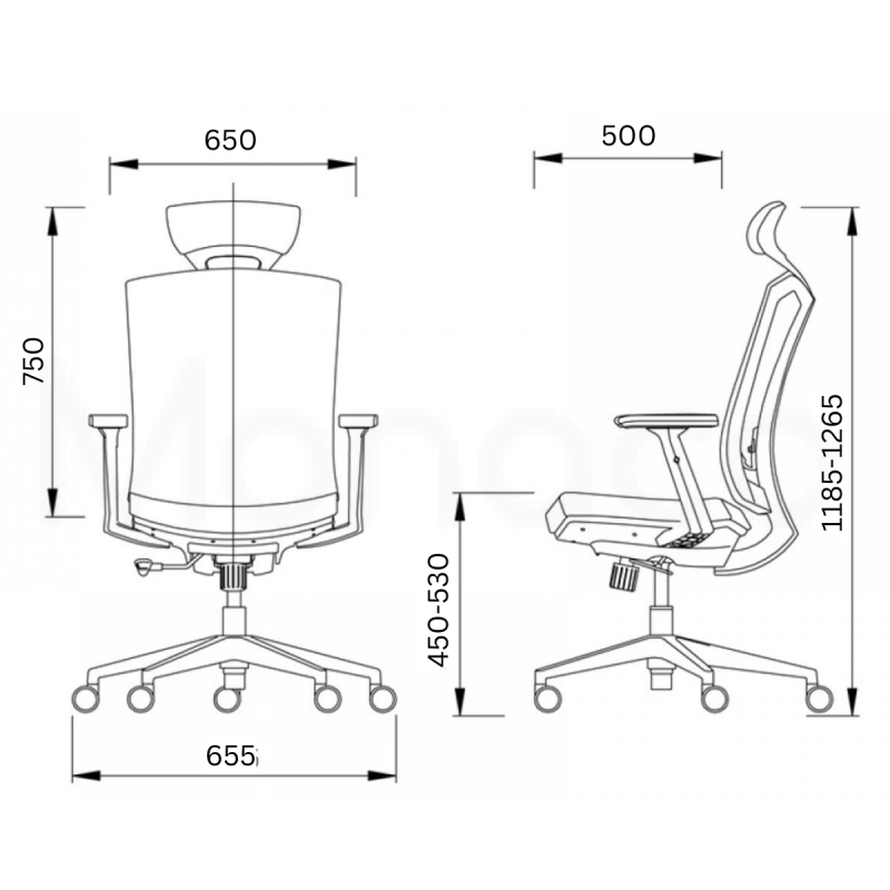 - Тапицерия на седалката от черна дамаска и мрежест гръб в черен цвят