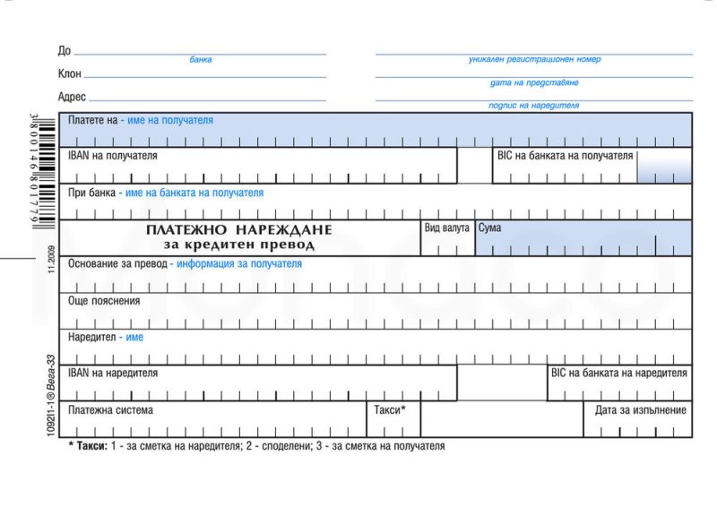 - Тази бланка се използва за кредитни преводи, с изключение на преводи между местни и чуждестранни лица по чл. 2, ал. 1 от Наредба №27 на БНБ